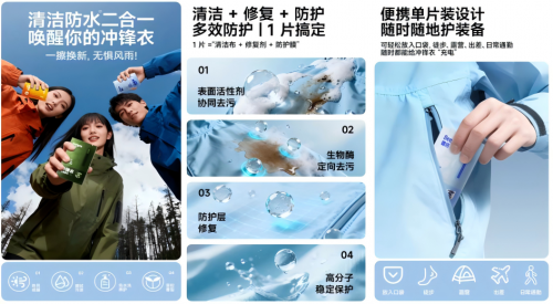 当户外爱好者面临冲锋衣沾污后“不敢洗、难打理、怕损涂层”的普遍困境时,Deeyeo德佑率先提出“清洁即养护”理念,将传统湿巾升级为兼具去污、修护、防护三重功能的专业装备护理工具。尤为关键的是,该产品已通过中轻纸品检验认证有限公司出具的专项检测报告(《河南逸祥卫生科技有限公司“德佑牌湿巾(冲锋衣专用)”对冲锋衣防水性能影响分析试验报告》),明确结论为:“擦拭后未影响其防水性能”。这一专业认证为产品的功效提供了权威背书,也为行业建立了重要的技术参考标准。