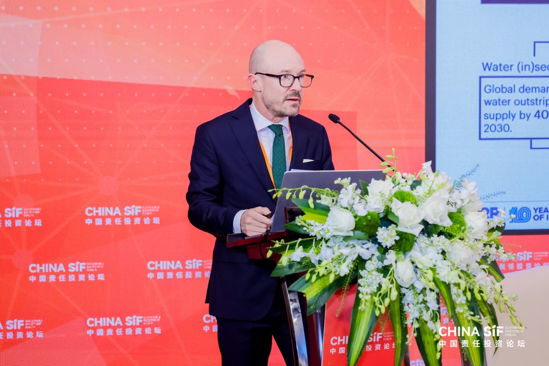 FAIRR Initiative投资者联络事务代理总监Marcus WILERT在主旨发言中分享了FAIRR在自然风险方面的研究,包括水风险、与大豆相关的毁林风险等,并介绍FAIRR如何支持投资者开展在自然风险议题与中国上市企业开展沟通对话。