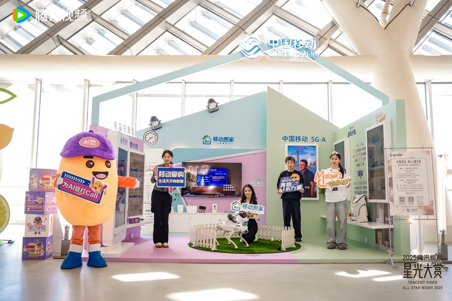 “移动爱家”以温暖日常呈现未来之家,观众通过“全国亲情网”的家庭连结、“智慧云盒”的语音智控,并与机器狗“灵犀”畅快互动,感受智能陪伴的温度;“动感地带”化身青春潮流基站,以演唱会、体育赛事等权益回应了年轻群体对文化认同与社群体验的渴望;“全球通”如同品质生活沙龙,通过“逐马计划”等尊享服务,诠释品质生活体验。而“移动爱购”与三大回馈计划,则以趣味设计,迅速点燃参与热情,让智慧消费变得生动可玩。