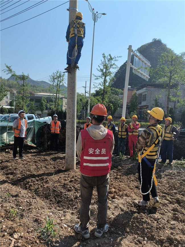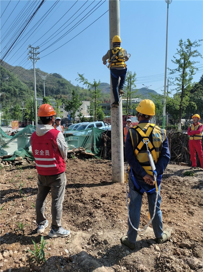 实操考核环节,考核内容涵盖安全法规、风险识别、防护装备使用、上杆操作、应急处置等核心要点。最后,所有人员都通过了高处作业考核,整治小组为其颁发了考核合格证。