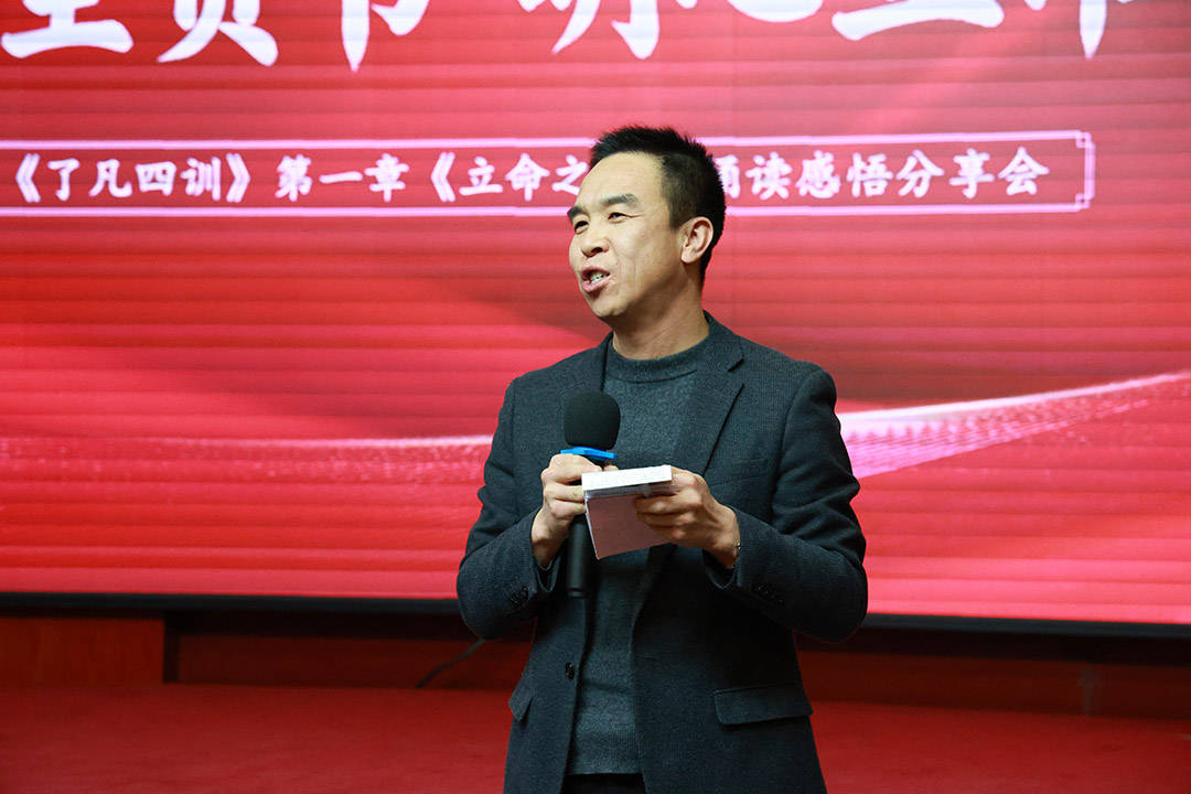 主持人焦庆亮主任在开场致辞中表示:“今天,我们以经典为媒,以感悟为桥,齐聚一堂,既是一场关于《了凡四训》的诵读分享,也是一次自我与心灵的深度对话。”随后,他带领全场共同诵读了《立命之学》的经典段落,让大家在了凡先生从深信宿命到觉醒转变的故事中,感受那份觉醒的力量。