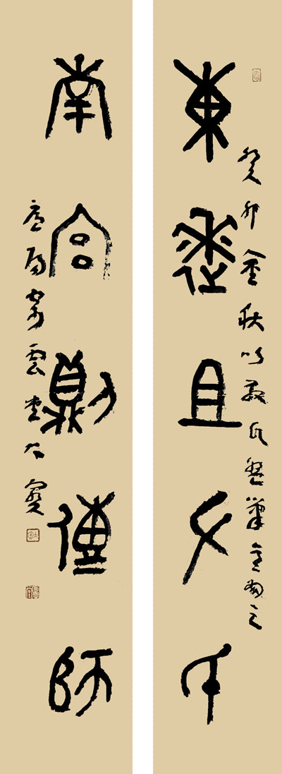 “夫篆、籀,实字之原;隶、真、草,其流派也。体虽不同,凡下笔当务方圜雄劲,则风神完足,而结缔之工拙不足计也。临池积久,必自有得。”(元·周伯琦)。先生汲古,首当篆籀。在诸多先秦篆籀、汉隶碑石简牍中,先生有意识的选择吻合自我艺术心性的篆隶范本,日夜精临。其中,尤以《散氏盘》最为用力。