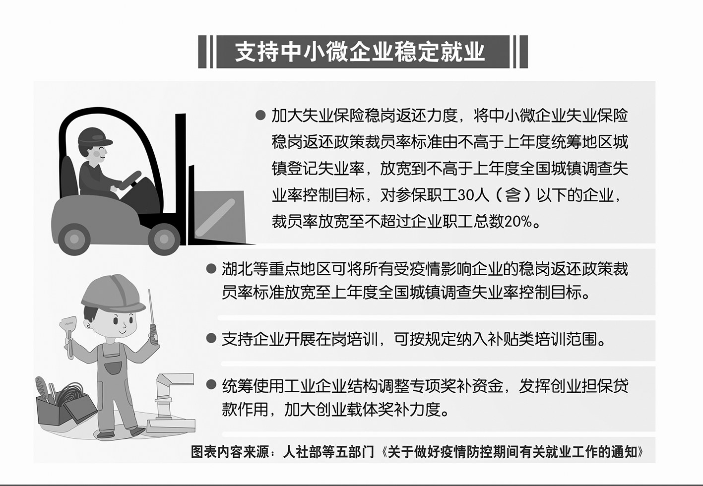 扬州市人社部门工作人员介绍,对不裁员或少裁员的参保企业,扬州市可返还其上年度实际缴纳失业保险费的50%。根据最新政策,将中小微企业失业保险稳岗返还政策裁员率标准由不高于上年度统筹地区城镇登记失业率,放宽到不高于上年度全国城镇调查失业率控制目标,对参保职工30人(含)以下的企业,裁员率放宽至不超过企业职工总数的20%。对面临暂时性生产经营困难且恢复有望、坚持不裁员或少裁员的参保企业,返还标准可按6个月的当地月人均失业保险金和参保职工人数确定。经初步测算,扬州将下发上亿元的援企稳岗金。